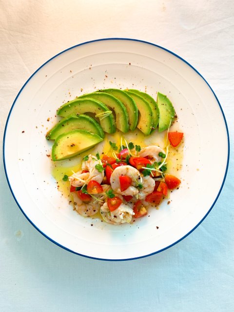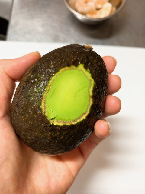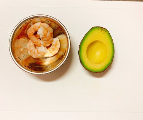 간이 전혀 되어있지 않은 아보카도와 전체에 믹스 스파이스 솔트를 덧뿌려주면 완성이다.아보카도 & 새우 칵테일이건 위에 마리네보다 더 간단하다.아보카도가 접시위에서 흔들리지 않토록 평평하게 등딱지를 적당히 잘라주고마요네즈(나는 타르타르 소스, 마요네즈가 없었음)