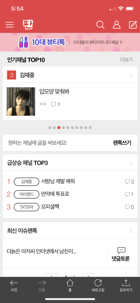 팬톡 3위(1 2위는 ㅇㅅㅌ ㅇㅅ) 급상승 채널 1위 무엇ㅋㅋㅋㅋㅋㅋㅋ