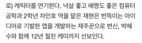 이번에 재현이 공대생역으로 처음으로 연기를 하게됨