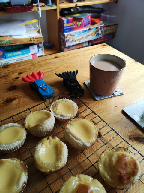 남친이 만든 에그타르트입니다... 인터넷으로 레시피 뒤적뒤적 하더니 만들더군요. 모양새는 약간 못생겼긴 하지만 맛있었어요 ㅎㅎ저희 둘다 각각 홍콩에 살았던 적이 있는데 그때 집근처 허름한 빵집에서 종종 사먹었던 추억돋는 그런 맛이었네요★
