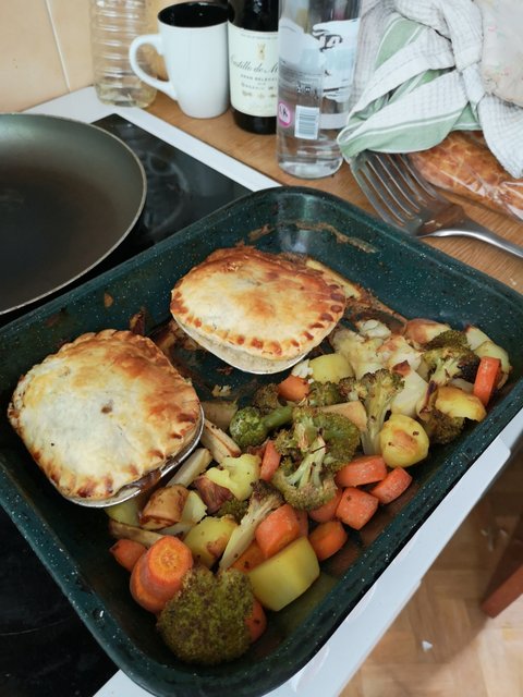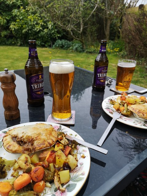 영국에서 3월부터 7월초까지 코로나로 음식점 술집 등등 다 닫았었을때 무엇보다도 가장 힘들었던게 펍을 못가는거였습니다. (생맥주 마시러 갈 곳이 없는게 힘들었습니다... 무튼 그랬습니다) 결국 집에서 펍 놀이(?!)를 해봤는데요, 정육점에서 파는 냉동 파이 사다가 사이드로 허니머스타드 글레이징을 한 채소류를 곁들여서 펍에서 먹는 점심 흉내를 내어 봤습니다 ㅎㅎ 다음번엔 냉동 파이 말고 집에서 수제로도 만들어보려고 (일단은 생각만) 합니다...