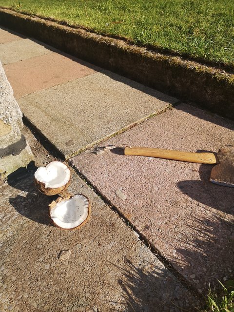 코코넛은 처음이라... 상당히 야만적인 방법으로 해체했습니다. (대참사)