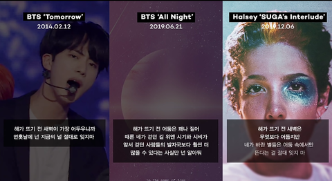 방탄 가사 중에는 몇 년 전 가사랑 이어지는 가사들이 많아