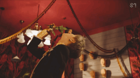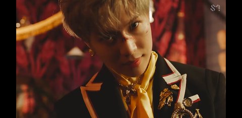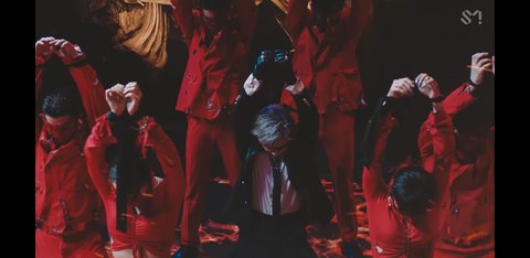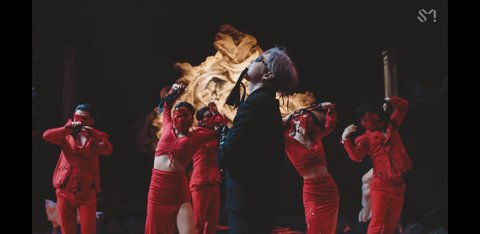 서스펙트의 차림으로 보이는 태민이가 빨간 천을 벗는데 댄서들이 보고있어.