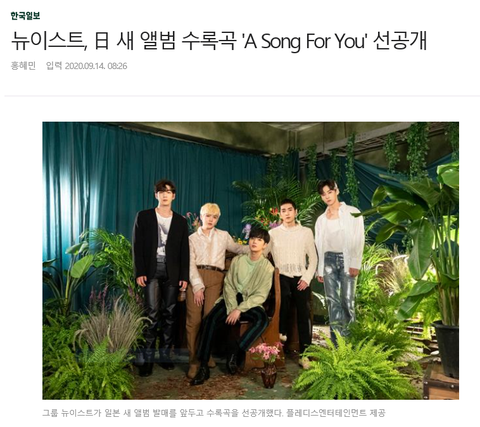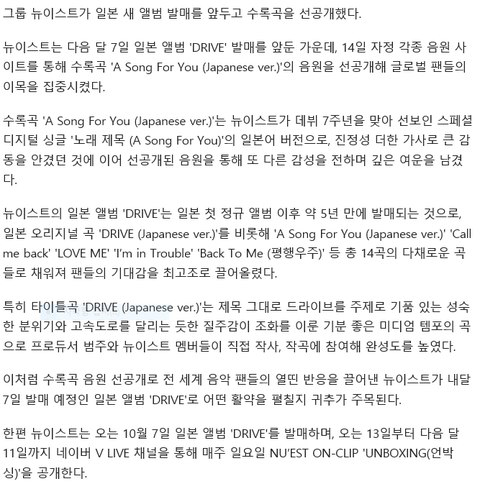 뉴이스트, 日 새 앨범 수록곡 'A Song For You' 선공개