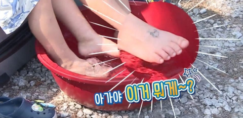자신의 발등에 붙은 스티커를 자랑함ㅋㅋ