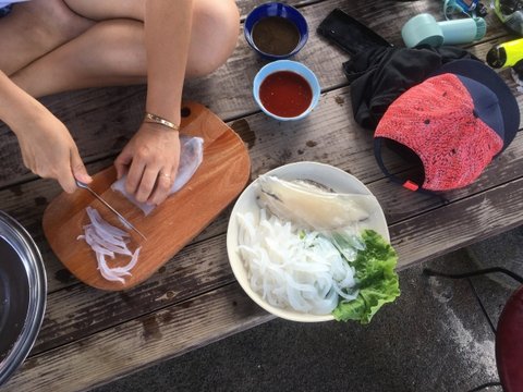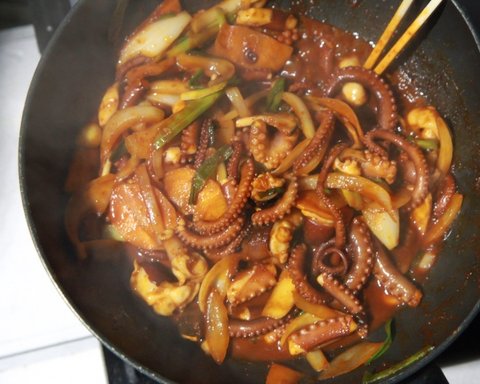 집앞에서 잡은 무늬오징어 즉석 회뜨기
