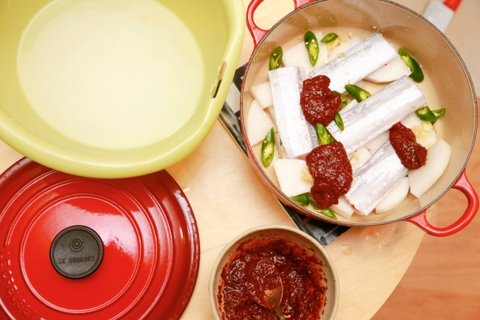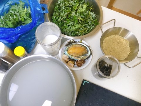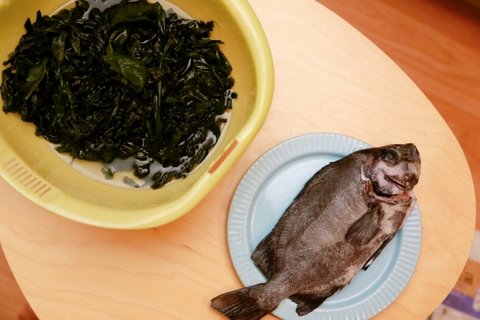 봄이라 오름에서 캔 쑥으로 쑥국만들고 홍해삼 벵어돔회