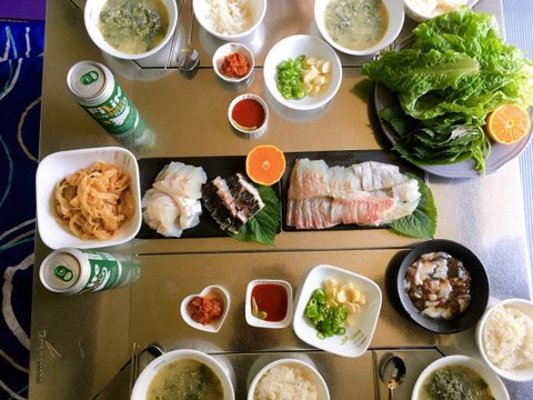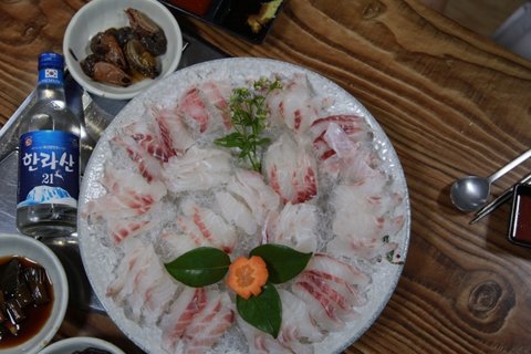 반은 회떠서 먹고 반은 자기 와이프 준다 가져감!!