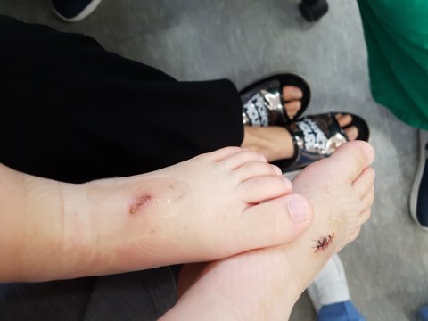 정작 상처 부위가 심해 수술 해야 된다는 왼발은 수술도 안하고 약물 치료로 완치 되었습니다.