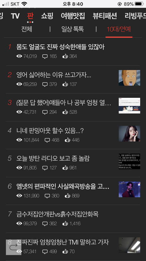 댓글 많은 톡