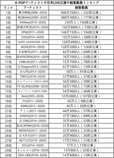 26위 슈퍼주니어 K.R.Y 20만 9600명(26회공연)