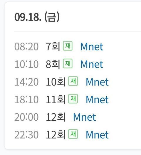 3. 마지막화 생방송 당일인 9월 18일 엠넷 편성표임.