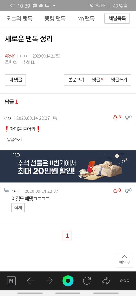 얘들아 이 댓 베댓 ㄱㄱ