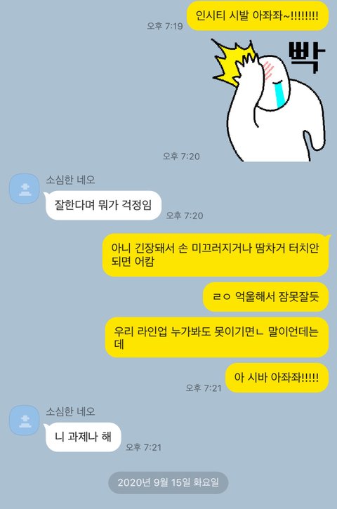 쇼바 아까 주접 너무 떨어서 개쪽팔렸는ㄴ데 진지걸 츤데레 룸메가(친구로는 7년차) 나 위로해주러 골뱅이 소면 해준대.... 나 너무 쪽팔린다 얘들아