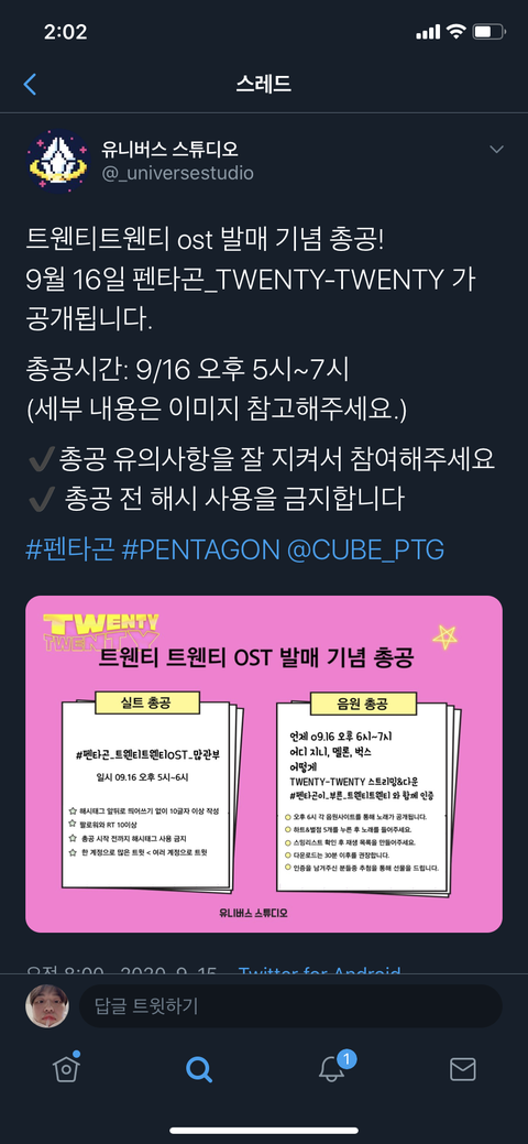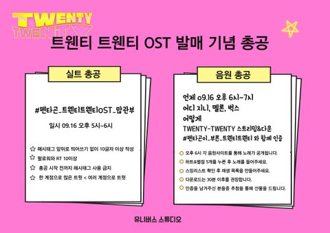 우리 트웬티트웬티 ost 발매관련 총공 떴다