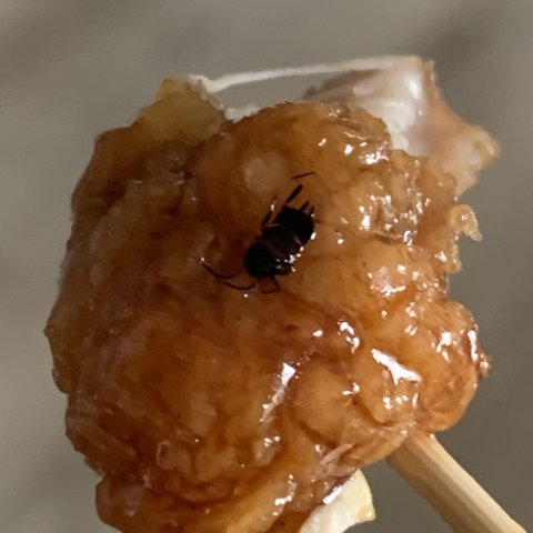 ㅇㅌ닭강정 먹다가 봤는데 벌레가 있음 사진을 보면 알듯이 내가 인위적으로 붙힌게 아니라 .... 기름도 좀 더럽고 그러던데 이런거 어디다가 민원? 넣을 수 있음? 내가 봤을땐 바퀴벌레 새끼 같음