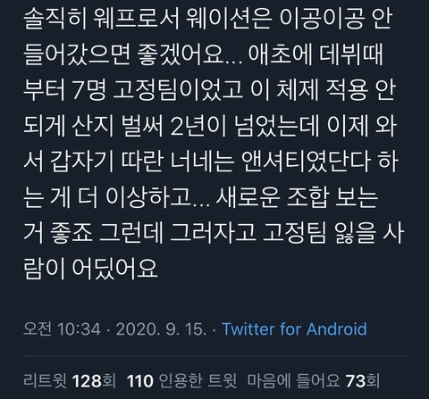 그논리면 동스청은 고정 127로 먼저 데뷔했는데 새로운 조합 본다고 sm이 빼버렷는데 이건 어쩔건데..