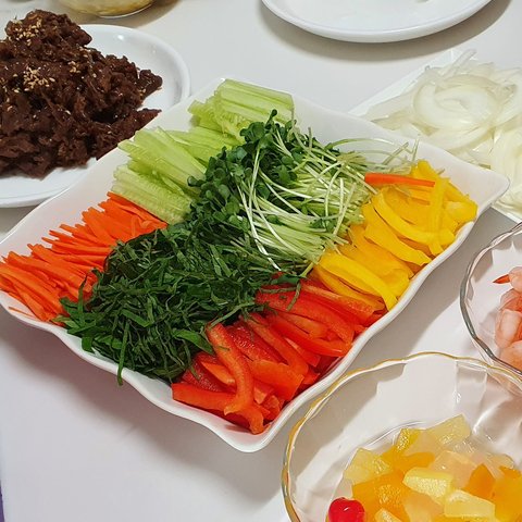 오리훈제대신, 소불고기로 달달함을 더했지요,