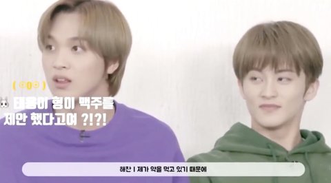 해찬이한테 맥주제안했다가 거절당한 태용이ㅋ