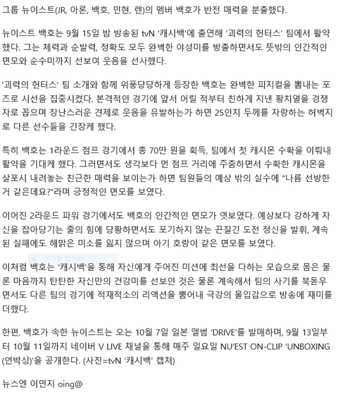'캐시백' 뉴이스트 백호, 야생-아기 호랑이 오간 반전 매력