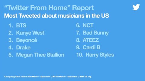 미국에서 가장 많이 트윗된 가수 탑10 (한국 남돌 3팀!)