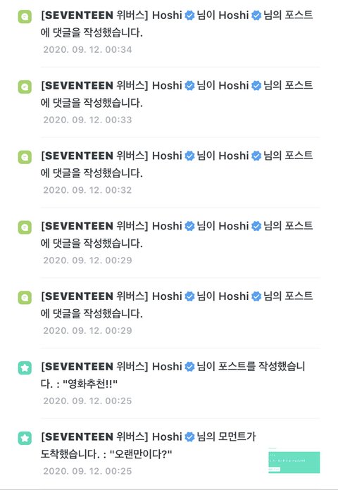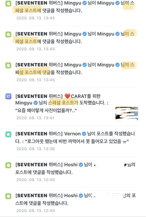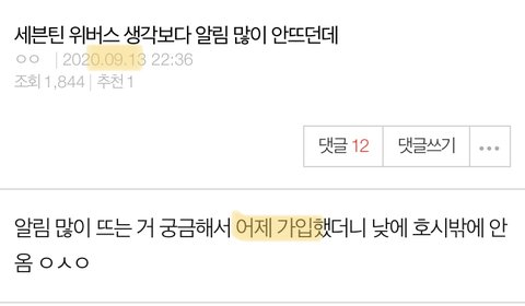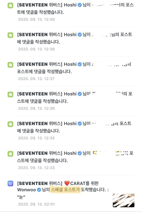 세븐틴 서치하다가 이런 글을 봐서 엥? 하고 얘가 가입한 12일이랑 13일 알림 확인 해봄