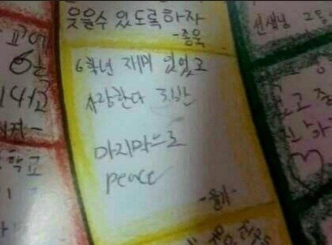 그리고 미늉기가 쌤 제 싸인 받으실래요 그랬는데 쌤이 닥쳐 그러니까 아 왜요 제가 나중에 진짜 유명해질수도 있잖아요 그랬는데 진짜 유명해짐 ㅋㅋㅋㅋ 음악쌤이 담임이셨으니까 미늉기 사정 같은거 안다고 성공해서 너무 뿌듯하다고 그러심 근데 이쌤이 방탄은 알았는데 슈가 본명을 몰랐대 근데 대구 예전학교에 볼일 있어서 갔는데 플랜카드가 붙어있었던 거징 알고보니까 그 민윤기가 민윤기 ㅇㅇ