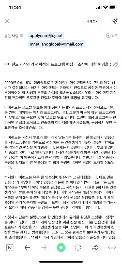 ++++ 남은 30분 mnetilandglobal@gmail.com 에도 같이 보내줘 동시에 보낼 수 있으니까!!