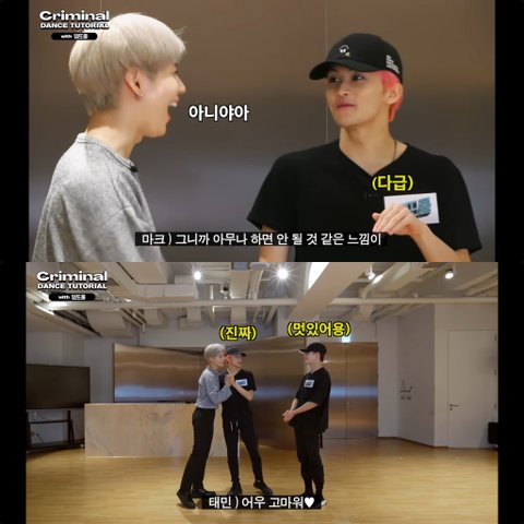엔시티 마크와 제노가 태민 신곡 criminal 안무 배우는 동영상이 올라왔어