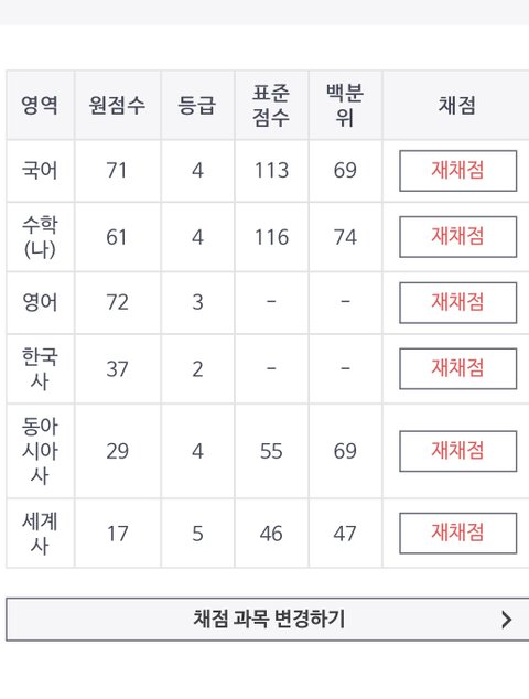 솔직히 핑계 좀 대보자면 시험장에 시계를 안 들고감 자퇴생이라 학원가서 쳤는데 시간 몰라서 멘탈 다 나감 그래서 평소보다 1등급씩 다 내려감 국어는 시간 몰랐던 게 제일 커서 2등급 내려갔고...