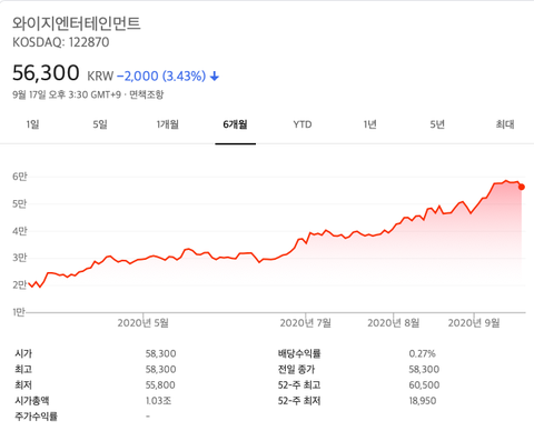 그리고 와이지 같은 큰 회사가 엔터만 하는줄 아나본데 방송 제작도 하고 골프,외식,화장품 사업도함. 문샷이 와이지꺼. 게다가 보통 회사의 규모를 파악할 때는 영익을 안보고 시총을 봄경제 공부좀;; 참고로 와이지 시총 엔터 2위.