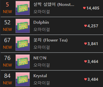 오마이걸만의 뛰어난 상승세 덕분에, 더쇼로 시작해서 인기가요까지 모든 음악방송 1위를 하게 됨으로써 오마이걸 첫 음악방송 1위 그랜드슬램 달성⭐️