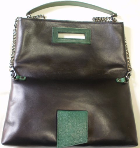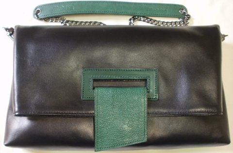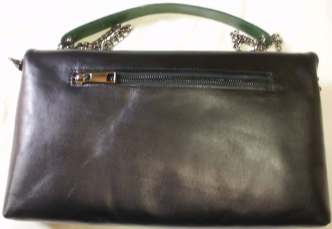 민무늬 블랙컬러의 가죽과 무늬를 스탬핑하여 천연염색한 카키컬러의 가죽으로 콜라보하였으며,흑니켈 도금 체인과 장식을 사용하여 럭셔리하며 필요시 접혀있는후드부분을 펴서 수납공간을 늘려 사용할 수 있도록 실용적으로 제작한 핸드메이드 클러치백입니다.(마디샤가죽공예