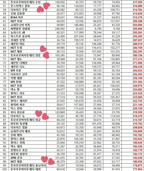 와 애들 100위안에 다들어옴❤6월이후 첨임ㅠㅅㅠ