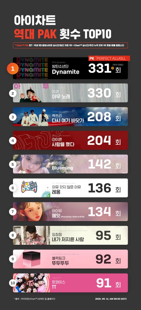 모든 음원 차트 올킬=퍼펙트 올킬도 최장시간 유지 중