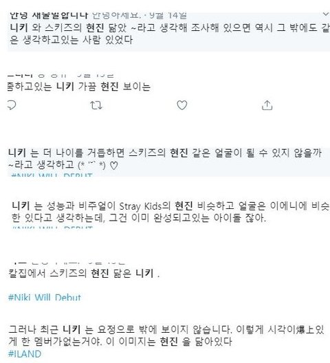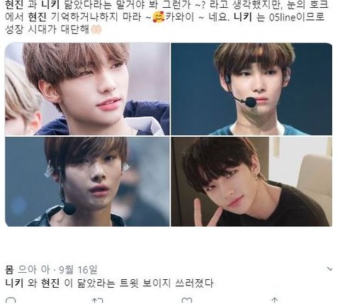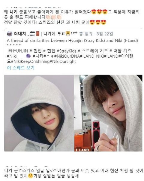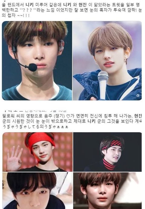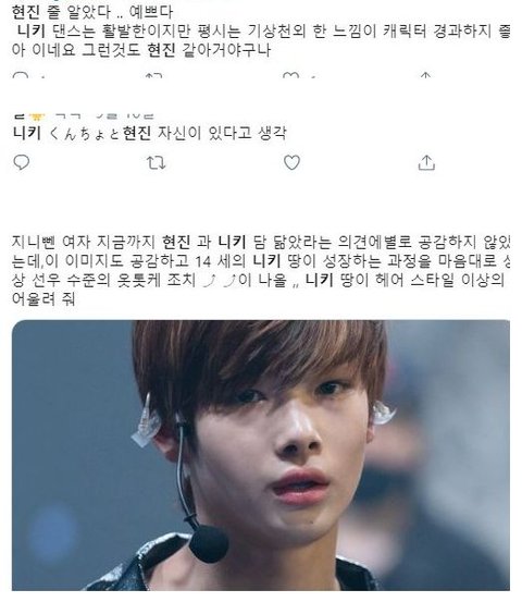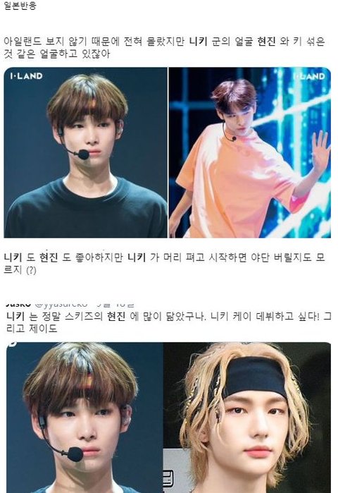아이랜드 일본멤 니키..근데 일본 케이팝팬들 사이에서 스키즈 현진 닮았다고 난리남