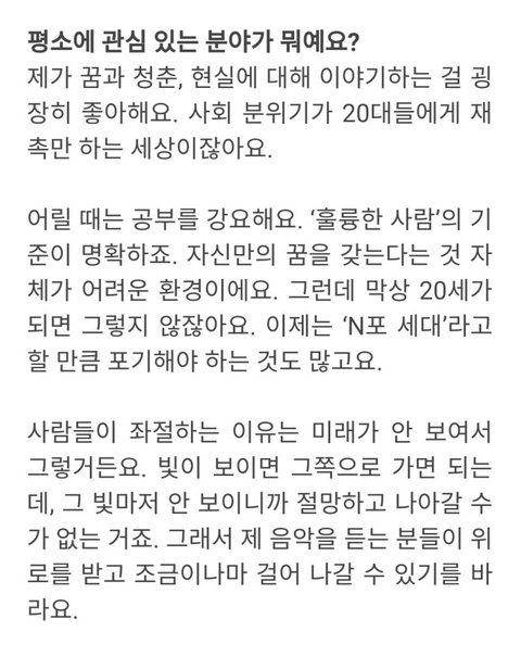 예전엔 '어떻게 꿈이 없어' 그랬을 텐데, 지금 보면 꿈이 없어도 되는 것 같아요.
