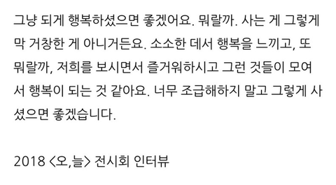 그렇지 않고 잔잔한 거에서 행복감을 느끼고 마음 편한 게 본인의 행복 중 하나라면 열정적으로 살아야 할 필요가 있을까? 라는 생각 또한 하고 있습니다.