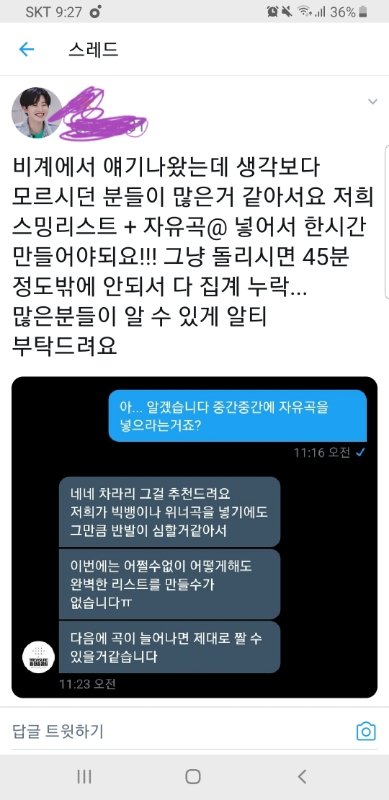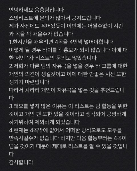 4곡당 자유곡 1개씩 넣어서 1시간으로 만들어줘