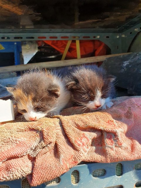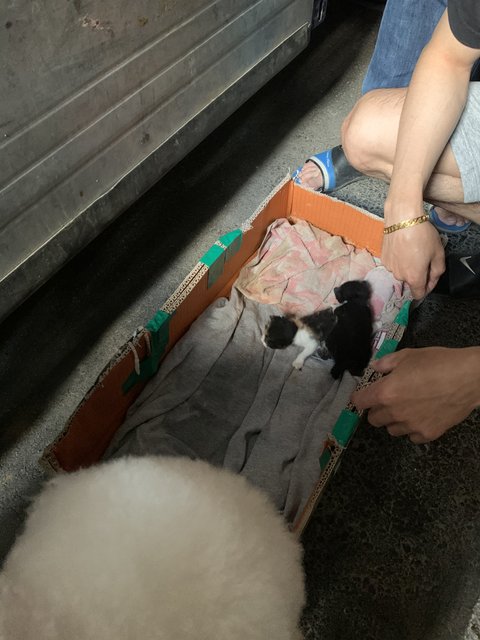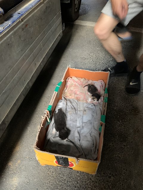 정리하다가 짐칸에 새끼 고양이가 있는 것을 발견했어요.