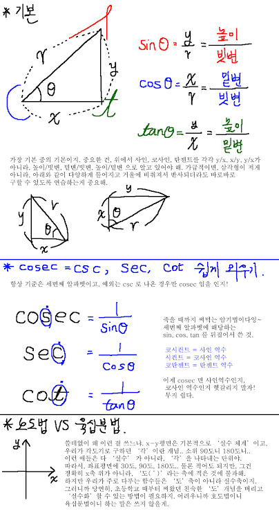 1. 삼각함수 극한단원 관련 내용인데 (준킬러로 나온다고함) 그냥 코사인탄젠트사인 역수취하는게 끝이고 첫번째사진도 중학교수학도제대로못하는 빡대가리들을 위한 공식 ㅋㅋ