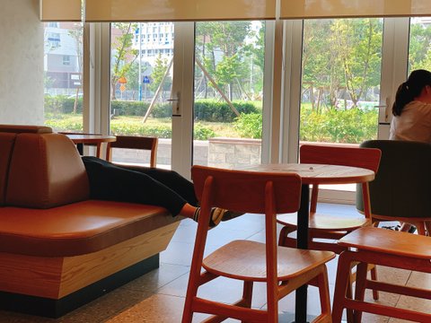 카페 들어오자마자 아~ 힘들다 하고 벌러덩 눕던 여자분...