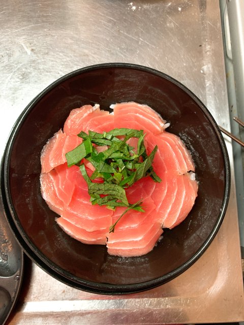 그래서 어쩌면 당분간 계속 생선회 위주로 식사를 하지 않을까 한다.참치회 덮밥갓지은 따끈한 밥에도톰하게 잘라낸 참치회를 올려주고향좋은 차조기잎 대충 썰어 올려주면 끝이다.