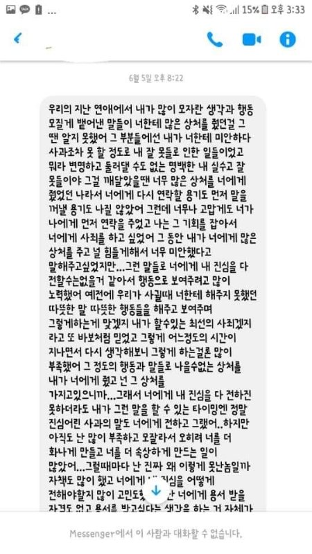 무슨 말을 전해주려고했던거 같았는데 기억은 정확히 안나네요 솔직히 안받아줄줄 알았어요