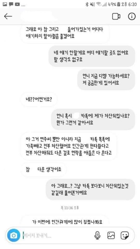 제가 디엠을 했을때 받아주면서 인스타는 놔두겠다고 한게 생각나네요