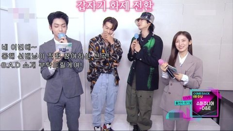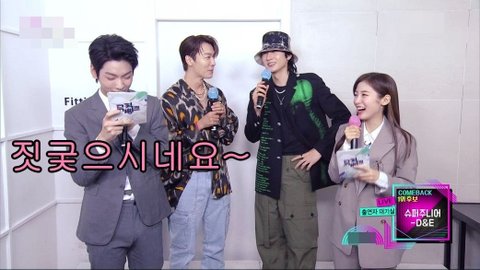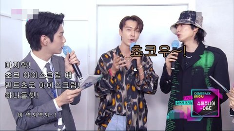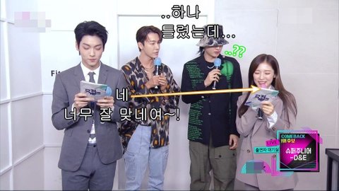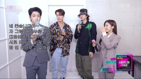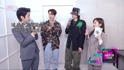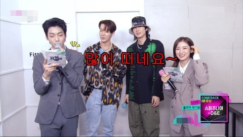 는 바로 뮤직뱅크 슈퍼주니어-D&E와 아린(오마이걸), 수빈(투모로우바이투게더) MC의 인터뷰