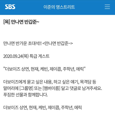 오후 8시 ~ 10시 이준의 영스트리트(상연, 현재, 제이콥, 케빈, 주학년, 에릭)