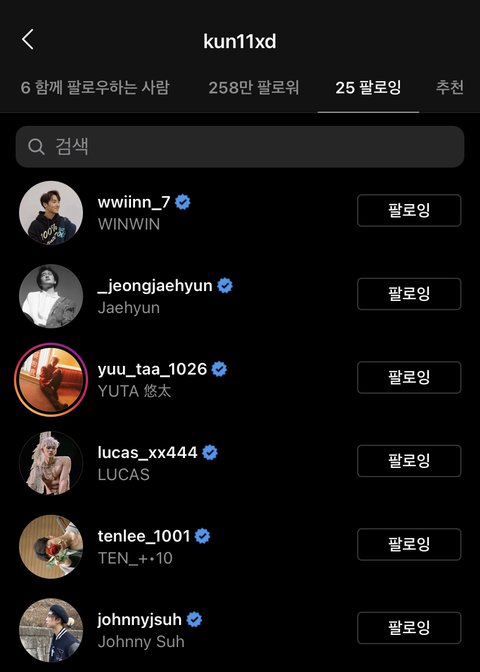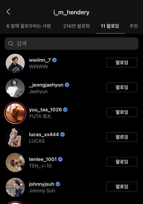 쿤이랑 헨드리 인별 쟈니재현유타 팔로했네