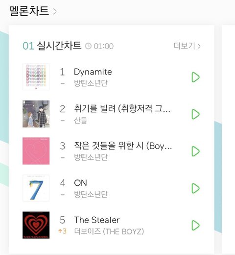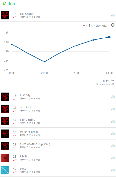 [실시간차트] 22일 01시 멜론 5위 지니 3위 벅스 2위